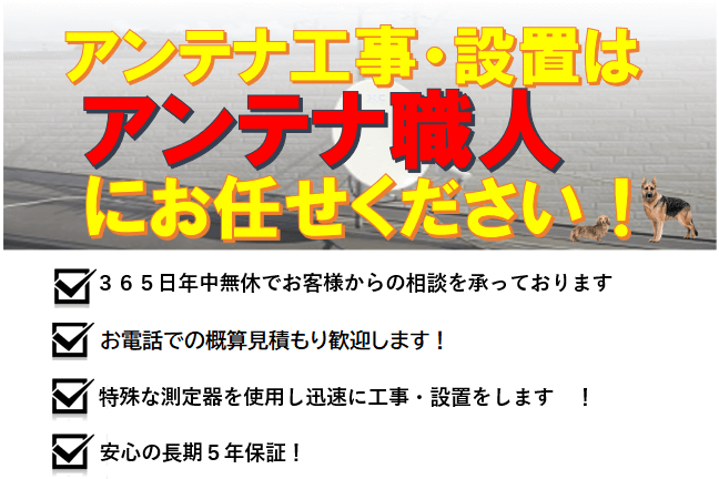 お気軽にお問い合わせください。アンテナ職人 TEL 090-3665-9348  営業時間 08:00~21:00 (年中無休)