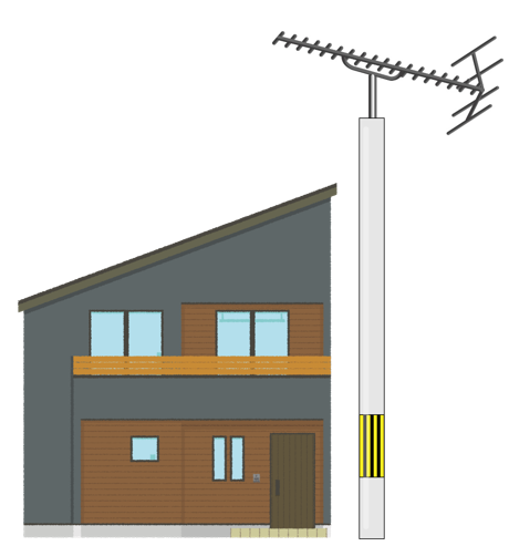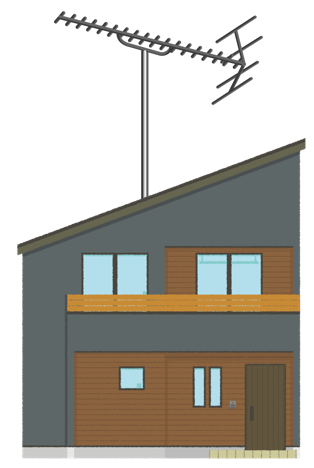 片斜面屋根の新築の建物にアンテナを設置したお客様から相談を受けました。アンテナが傾いてBS,地デジが受信できないと言うことです。